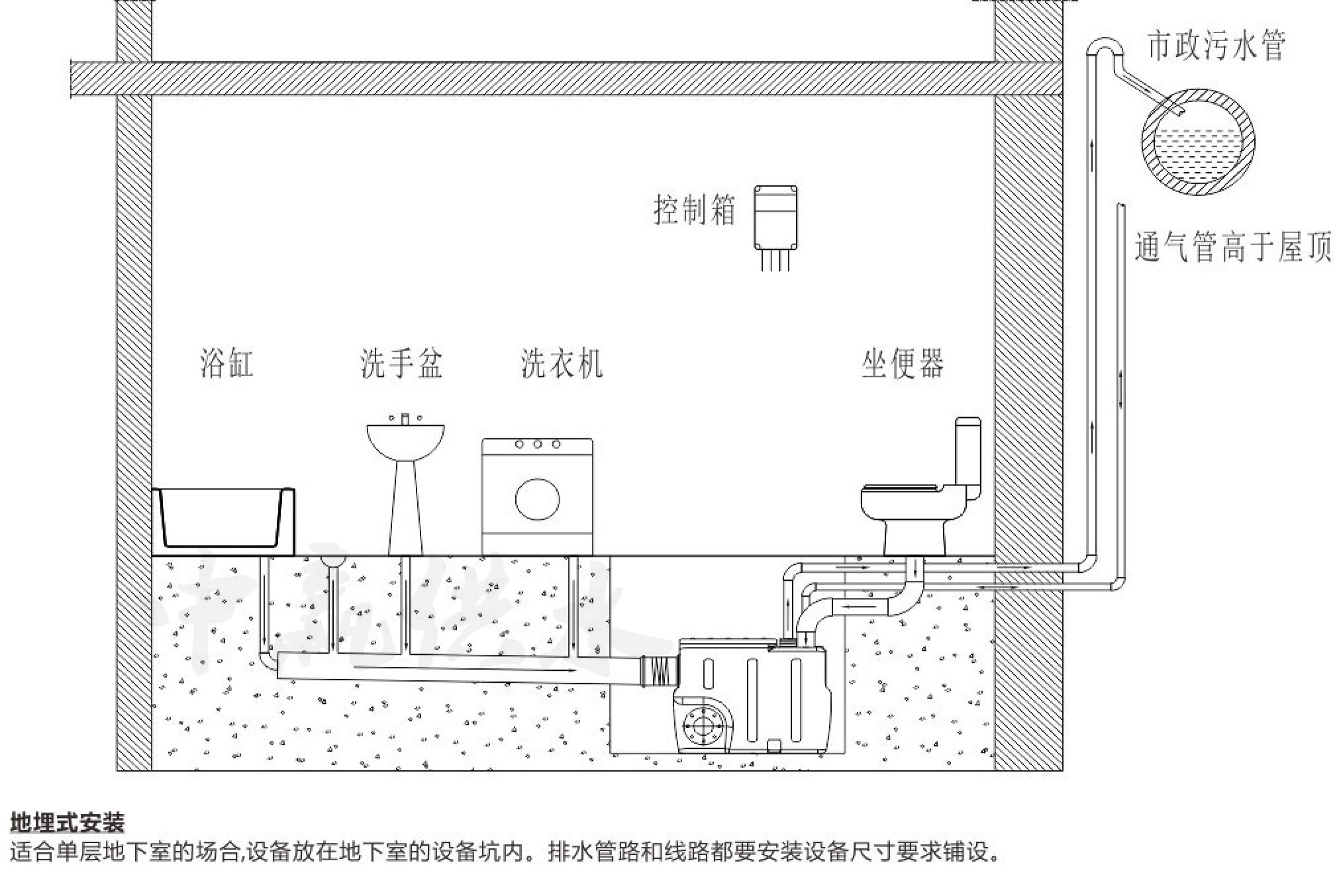 各類建筑地下室、辦公樓地下室、地鐵車站、地下商場等各類地下建筑的污水的排放問題使地下室自動污水提升器應運而生,其排水過程是污水通過整套設備的入口自流進入集水箱,到達設備的啟動水位后,設備自動啟動,將污水提升排放到市政管網(wǎng)。下面中贏供水小編來為大家講解地下室自動污水提升器安裝示意圖、使用方法。