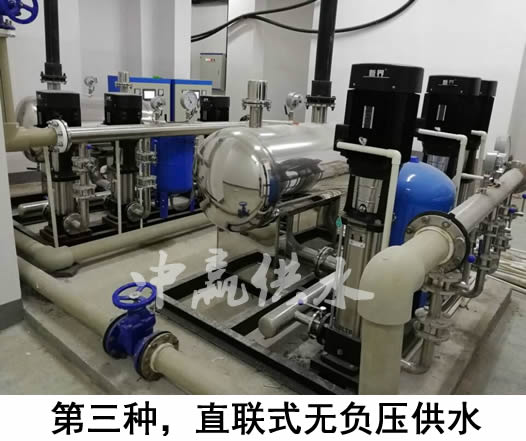 如果地下室沒有儲水池或不銹鋼水箱,而是直接通過中贏無負壓供水設備疊加市政管網已有壓力進行加壓的,由于它是與自來水管道是串聯的,密封性非常好,所以不會產生二次污染,大家可以放心使用(自來水--無負壓設備--用戶)。第三種供水方式